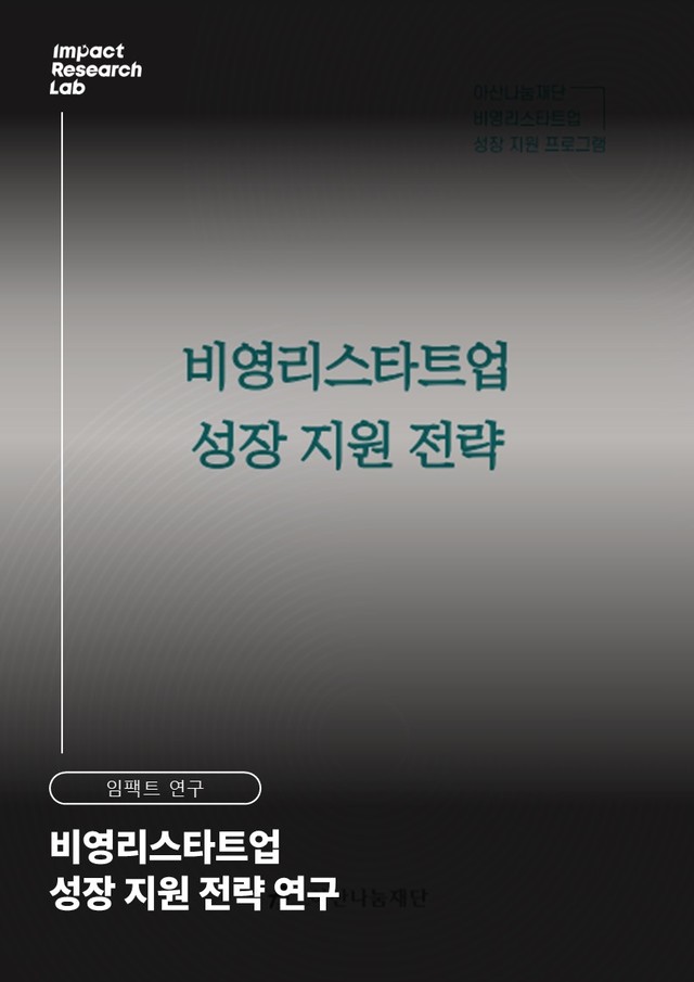 아산나눔재단 비영리스타트업 성장지원 프로그램 참여 기관 성과 관리 및 비영리스타트업 성장 지원 전략 연구 수행
